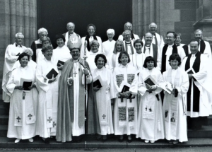 As Archbishop of Adelaide, Bishop Keith ordained less than a handful of women as deacons. In Melbourne he inherited a significant number and added more himself till there were around 50 women deacons in that diocese alone. Most believed they were called to the priesthood. Many had years of professional ministry behind them as deaconesses, pastoral workers, hospital chaplains and missionaries. Some had ministered as clergy wives. Elizabeth Alfred had been a deaconess since 1944. Elizabeth Smith was a liturgist whose subtly inclusive language hymns were already sung at ordinations and in parishes around the diocese. (Some are in Together in Song; some of you will have sung them). Two of the first deacons, Barbara Darling and Kate Urwin, later became bishops.